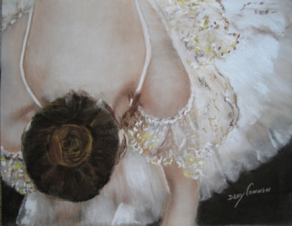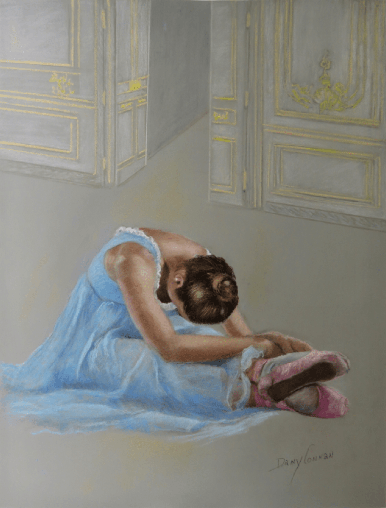 Ballerina tying her shoelace (Pastel 24″ x 18″)